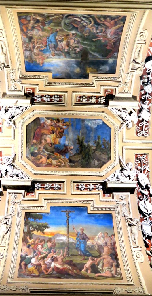 “C’entrano – è la risposta – perché la Chiesa ha sempre letto quegli avvenimenti in chiave simbolica: Mosè che salva il popolo eletto facendo sgorgare l’acqua dalla roccia e dividendo le onde del Mar Rosso, nell’interpretazione tradizionale della Chiesa è figura di Cristo, che con il suo sacrificio salva l’umanità. E quanto al parallelismo fra Gesù crocifisso e il serpente di bronzo, è Gesù stesso a farlo quando dice: “… Come Mosè innalzò il serpente nel deserto, così bisogna che il Figlio dell’uomo sia innalzato, affinché chiunque crede in lui abbia la vita eterna”. (Giovanni 3, 14-16). La qualità dei tre quadri è con ogni evidenza molto elevata da ogni punto di vista: compositivo, iconografico e del colore.