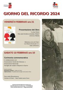 Chieri e il Giorno del Ricordo: il 9 e 10 febbraio commemorazione e convegno