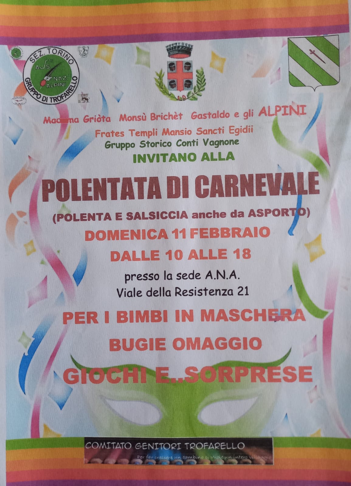 TROFARELLO. Domenica 11 febbraio POLENTATA DI CARNEVALE.