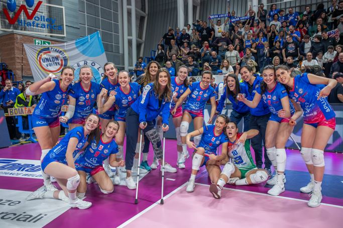 Villafranca Piemonte | 4 FEBBRAIO 2024 – La Wash4Green Pinerolo si prende il primo derby della stagione superando la Reale Mutua Fenera Chieri 3-1 nella sesta giornata di ritorno. In un Pala Bus Company sold out, caldissimo e pronto a dare tutto il proprio supporto per il derby, le padrone di casa dimostrano di andare contro ogni difficoltà mettendo in tasca tre punti preziosissimi. Nonostante la pesante assenza di Ungureanu, infortunatasi domenica scorsa che si aggiunge ad altre importanti assenze, le pinelle con carattere, grinta e bel gioco vincono il primo derby da quando la società è in serie A1 contro una delle formazioni più quotate in questo momento, capace di eliminare dai quarti di Coppa Italia Novara. Merito di un gruppo unito e compatto, a partire da Mason, capace di integrarsi alla perfezione in pochissimo tempo, passando poi per Storck e Nemeth, due pedine su cui Marchiaro può sempre contare e una Akrari da 14 punti con 5 muri e 2 ace. Numeri che le hanno permesso di aggiudicarsi il premio mvp. Tra le fila ospiti terminano con 11 punti Grobelna, Zakchaiuo e Omoruji. Bregoli sfrutta tutte le sue giocatrici ma non basta, la vittoria è di Pinerolo.