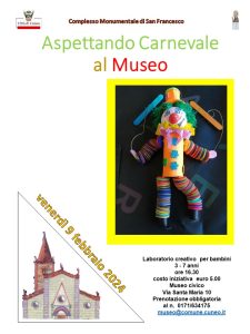CUNEO. Venerdì 9 febbraio “Aspettando il Carnevale al Museo Civico” – laboratorio creativo per i bambini tra i 3 e i 7 anni.