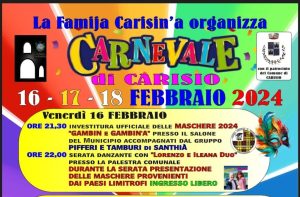 CARISIO. Venerdì 16 febbraio investitura maschere Gambin e Gambina.