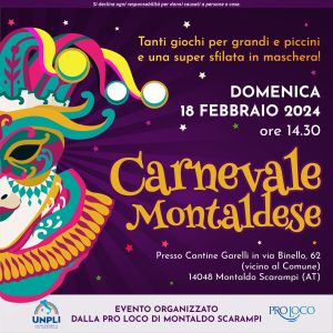 MONTALDO SCARAMPI. “Carnevale Montaldese 2024”da giovedì 8 a domenica 18 febbraio.