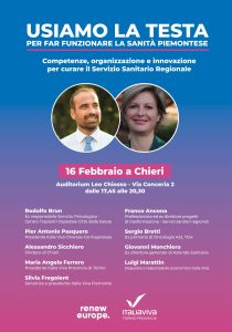 Venerdì 16 febbraio alle 17:45, presso l’auditorium Leo Chiosso di Chieri, in via Conceria 2, Italia Viva terrà un importante evento sul tema della gestione sanitaria in Regione Piemonte.Pier Antonio Pasquero, Presidente di Italia Viva del Chierese-Carmagnolese, aprirà la serata presentando un gruppo di persone con indubbie competenze in materia (si veda la scaletta degli interventi sulla locandina). Il Sindaco Sicchiero porterà i saluti della Città, ma coglierà l’occasione anche per evidenziare il silenzio sulle sorti dell’ospedale cittadino, alla luce della realizzazione del nuovo ospedale di Cambiano,che dovrebbe assorbire l’attività oggi svolta dagli ospedali di Chieri, Carmagnola e Moncalieri.La partecipazione politica sarà di grande rilievo, vista la presenza della Senatrice Silvia Fregolent, Presidente regionale di Italia Viva Piemonte, di Maria Angela Ferrero,Presidente di Italia Viva provincia di Torino e dell’On. Luigi Marattin, Responsabile economico del partito. Tra i relatori spiccano i nomi del Dott. Giovanni Monchiero, già direttore generale dell’ASL di Alba-Bra, già commissario straordinario dell’ospedale Molinette, e deputato della Repubblica, per una legislatura, membro della Commissione Sanità. Il gruppo è completato dal Dott. Sergio Bretti, oncologo, già primario della ASL TO4 e dal Dott. Franco Ancona, professionista già impegnato in importanti progetti di razionalizzazione e di trasformazione organizzativa di servizi sanitari regionali.Il dibattito sarà moderato dal Dott. Rodolfo Brun, psicologo, già responsabile del Servizio Psicologico del Centro Trapianti dell’Ospedale Città della Salute.Il tema dell’evento è la gestione razionale delle risorse pubbliche impiegate nell’assistenza sanitaria in Piemonte, e l’auspicio che la nostra regione possa finalmente raggiungere gli standard di servizio garantiti dai servizi sanitari delle altre regioni del nord-Italia. Non a caso il titolo dell’evento è: “Usiamo la testa per farfunzionare la sanità piemontese. Competenze, organizzazione e innovazione percurare il Servizio Sanitario Regionale”