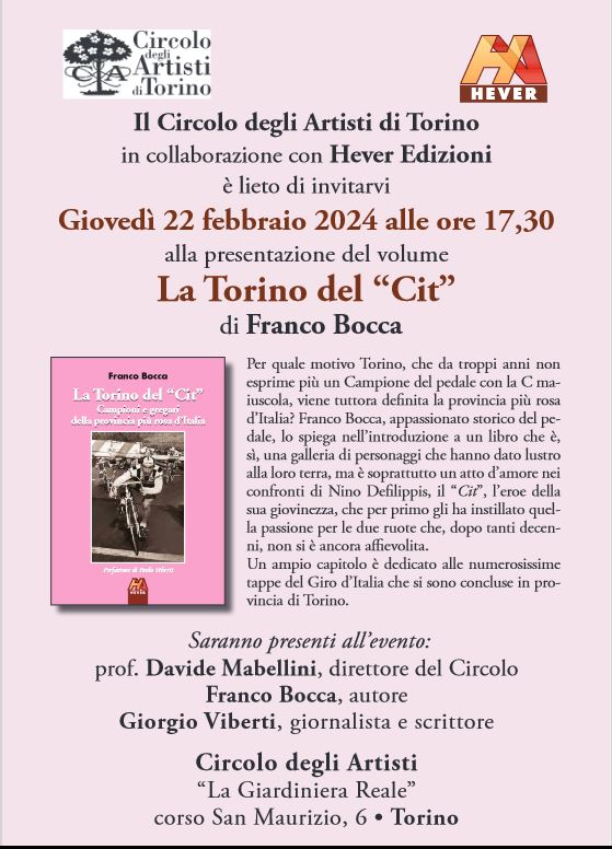 CIRCOLO DEGLI ARTISTI: PRESENTAZIONE DEL LIBRO “LA TORINO DEL ‘CIT'” DI FRANCO BOCCA