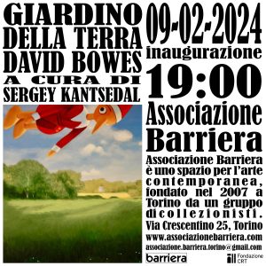 Associazione Barriera presenta “Giardino della Terra”, mostra personale di David Bowes (1957), artista americano che ha attraversato la scena newyorkese degli anni ’80 e che attualmente risiede a Torino, luogo dove si è stabilito dopo aver lavorato in diverse città italiane, tra cui Roma, Napoli, Firenze e Palermo.