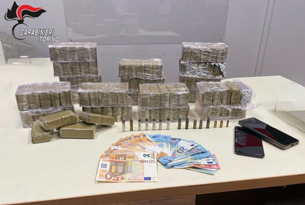Nel pomeriggio di sabato 17 febbraio, nel quartiere “Crocetta”, i Carabinieri del Nucleo Radiomobile di Torino, nell’ambito del servizio di prevenzione dei reati contro la persona e il patrimonio, hanno arrestato due persone – un trentottenne e un quarantenne torinesi – per “produzione, traffico e detenzione illecita di sostanze stupefacenti o psicotrope e detenzione abusiva di armi”. I due uomini erano stati fermati per un controllo occasionale mentre si trovavano a bordo di un’autovettura noleggiata con una società di leasing; alla vista dei Carabinieri, i due hanno palesato un certo nervosismo che ha indotto i militari ad eseguire una verifica più approfondita. Il fiuto dei Carabinieri è stato vincente: all’interno dell’auto, sui sedili posteriori, sono stati trovati 11 kg di hashish, suddivisi in 100 panetti, contenuti in due borse di plastica da supermercato, e 1.070 euro in contanti, presumibilmente frutto dell’attività di spaccio della droga. L’attività è proseguita con le perquisizioni domiciliari e, anche in questo caso, i Carabinieri hanno fatto centro: a casa del quarantenne, è stato trovato un altro chilo e duecento grammi di hashish, suddivisi in 12 panetti, e 15munizioni di vario calibro. I due presunti spacciatori, arrestati in quanto gravemente indiziati di detenzione e spaccio di sostanze stupefacenti, sono stati accompagnati in carcere presso la Casa Circondariale “Lo Russo – Cutugno” di Torino, a disposizione dell’Autorità Giudiziaria.