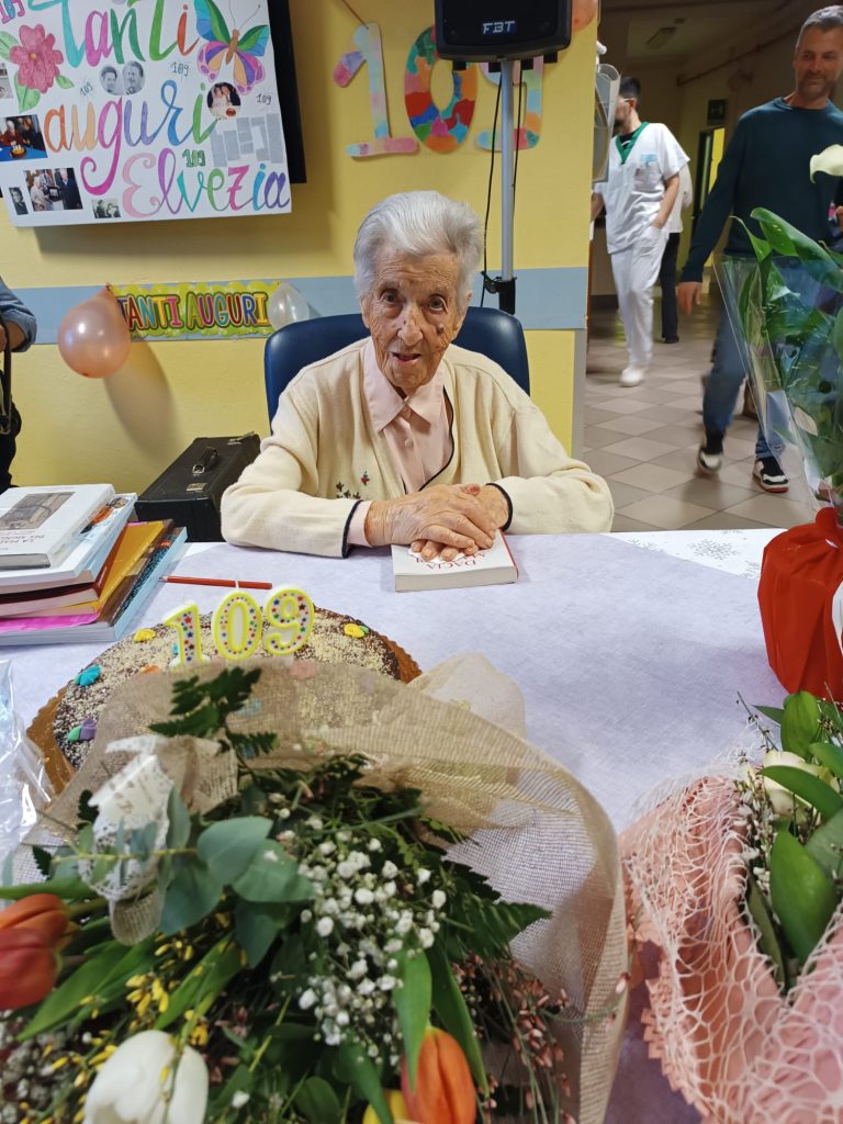 Gran festa a Buttigliera d’Asti, dove alla Casa di Riposo Rossi ha compiuto la bellezza di 109 anni la signora Elvezia Distaola. Presenti famigliari e amici e ben rappresentate le istituzioni, a cominciare dall’amministrazione comunale di Buttigliera, dal sindaco di Marentino e dalla Provincia di Asti.
