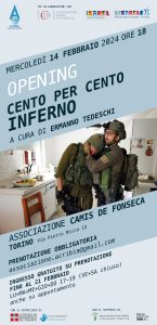 Ha inaugurato mercoledì 14 febbraio presso la sede dell’Associazione Camis De Fonseca di Torino (Via Pietro Micca, 15) il progetto cura di Ermanno Tedeschi Cento per cento inferno con le fotografie di Ziv Koren e la raccolta di video della Galleria del Kibbutz Be’eri. L’iniziativa propone una riflessione sull’arte israeliana a seguito dei drammatici fatti del 7 ottobre, con opere video e fotografie ed è stata realizzata in collaborazione con l’Ufficio Culturale dell’Ambasciata di Israele a Roma e con l’Associazione Camis De Fonseca, con il patrocinio del Consiglio Regionale del Piemonte e del Comitato regionale per i Diritti Umani e Civili e con il supporto dell’Associazione Italia-Israele di Torino e di Banca Patrimoni Sella & c.