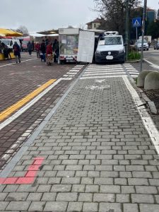 “Piazza Europa a Chieri, mercato del venerdì, come al solito la pista ciclabile scompare sotto auto e camion. Nonostante la presenza del nuovo furgone della Polizia Municipale…” Testo e foto di un lettore che la pista ciclabile la userebbe, eccome…