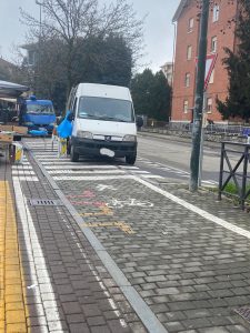 Chieri. “La pista ciclabile scompare come al solito sotto auto e camion…”