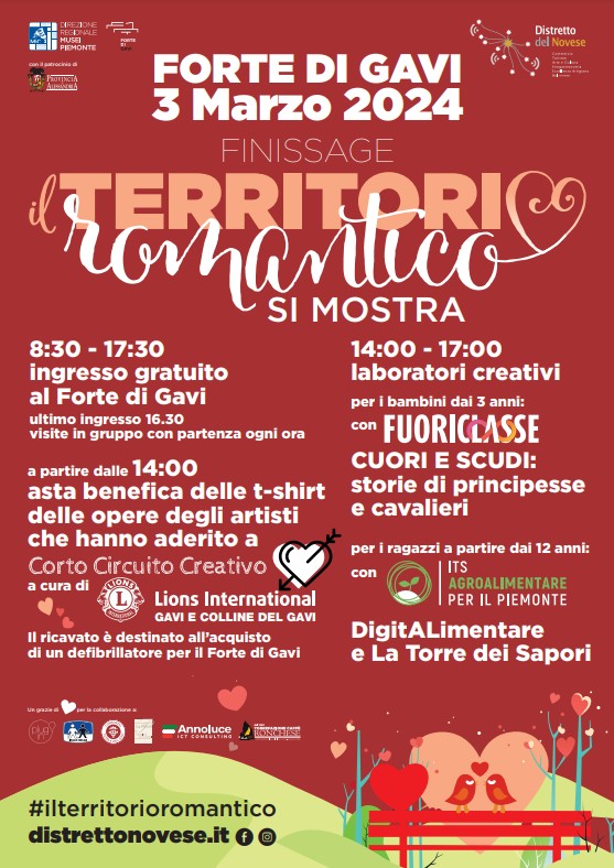 Dopo il successo della Camminata del Cuore svoltasi sabato 24 febbraio 2024 per scoprire le 9 panchine romantiche allestite nel centro di Novi Ligure, realizzata dall’associazione Cammina Novi in collaborazione con Distretto del Novese e il Comune di Novi Ligure, ci si avvia alla fase conclusiva dell’edizione 2024 de Il territorio romantico, con un gran finale al Forte di Gavi, il 3 marzo 2024.