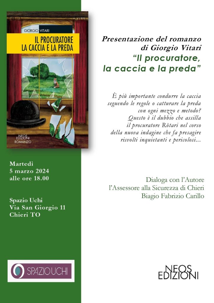 Chieri. 5 marzo: presentazione del romanzo di Giorgio Vitari “Il procuratore, la caccia e la preda” di Redazione · 28 Febbraio 2024 Visto da: 149