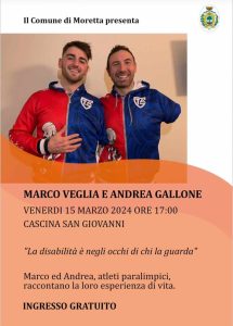 Lo sport è inclusivo e fa rinascere! Ancor più se rinasce dalla caparbietà di due atleti paralimpici Marco Veglia e Andrea Gallone che non si fermano di fronte alle difficoltà che la vita ha presentato nel loro cammino. “La disabilità è negli occhi di chi la guarda” è la storia che i due atleti racconteranno nel corso di un incontro organizzato dal Comune di Moretta che si svolgerà venerdì 15 marzo alle ore 17 alla Cascina San Giovanni. Entrambi non solo campioni nello sport ma nella vita. Quella vita che ha presentato loro un percorso diverso, inaspettato. Un grave incidente per Marco, una grave malattia per Andrea; nulla è perso. La sfida ha inizio e ogni giorno con grande determinazione, caparbietà ed entusiasmo, si affrontano i nuovi eventi. Si sono trovati a dover ripensare sé stessi e il modo di vivere le esperienze, il lavoro e il tempo libero. Non si sono abbattuti, anzi hanno avuto la grande abilità di vedere il mondo con occhi diversi e di saperlo affrontare con lo spirito giusto, riuscendo in imprese che hanno dell’incredibile. Il racconto di questa sfida non è da perdere!
