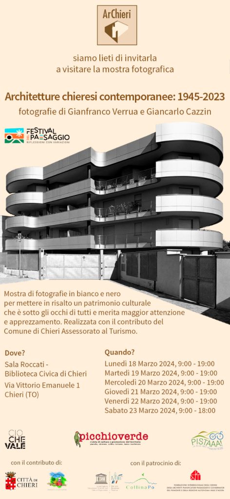 ARCHITETTURE CHIERESI CONTEMPORANEE: 1945-2023″. FOTOGRAFIE DI GIANFRANCO VERRUA E GIANCARLO CAZZIN
