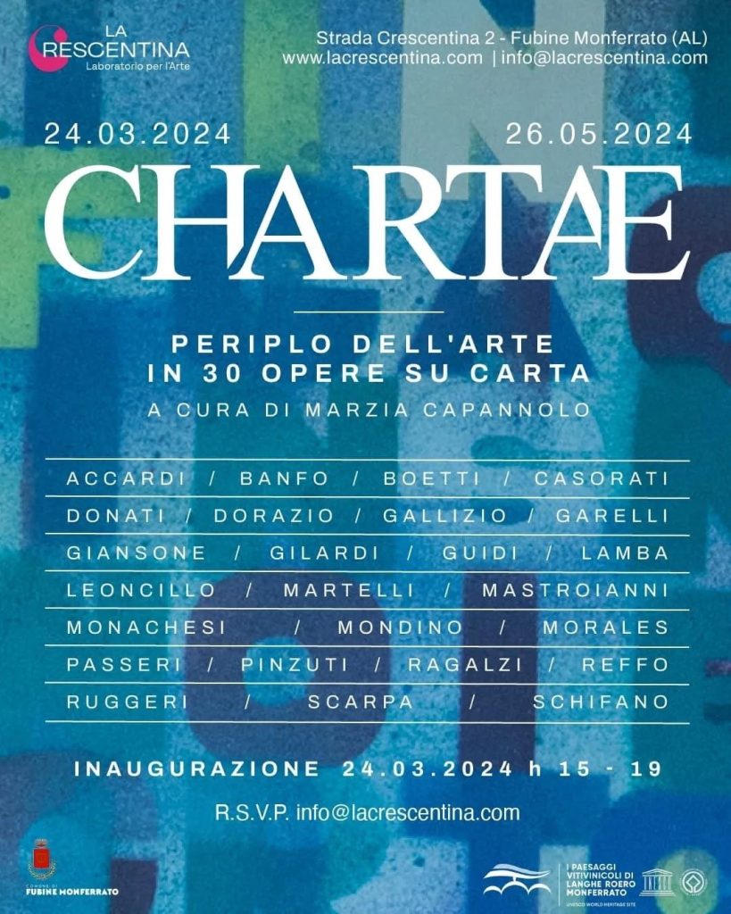 FUBINE MONFERRATO. LA CRESCENTINA. “CHARTAE”, PERIPLO DELL’ARTE IN 30 OPERE SU CARTA
