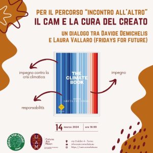 Giovedì 14 marzo alle ore 18,00 il Polo Culturale “Cultures and Mission” (via Cialdini 4, Torino) propone la presentazione di “The climate book” di Greta Thunberg insieme con il giornalista Davide Demichelis e Laura Vallaro (Fridays for future Piemonte).