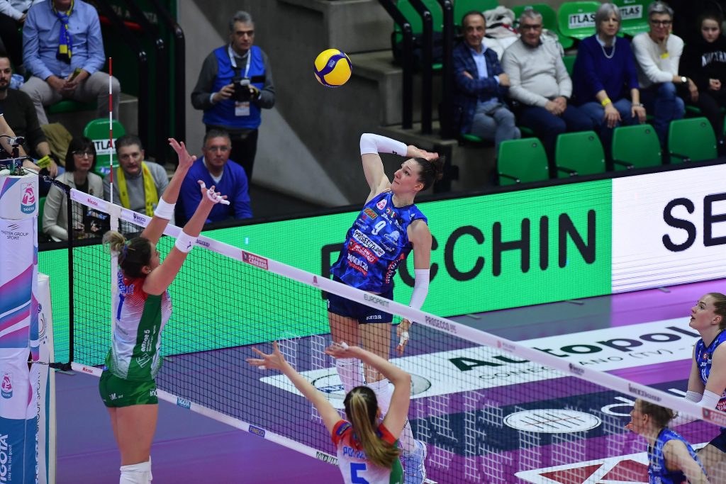 WASH4GREEN PINEROLO: Sorokaite 7, Cambi 5, Polder 6, Nemeth 9, Mason 5, Akrari 4, Moro (L), Storck 5, Di Mario. Non entrate: Cosi, Bussoli, Camera. All. Marchiaro.