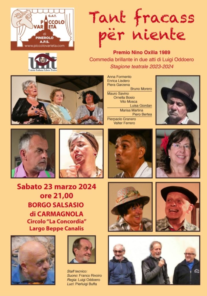CARMAGNOLA. Sabato 23 marzo ” Tant fracass per niente” al Circolo La Concordia di Borgo Salsasio