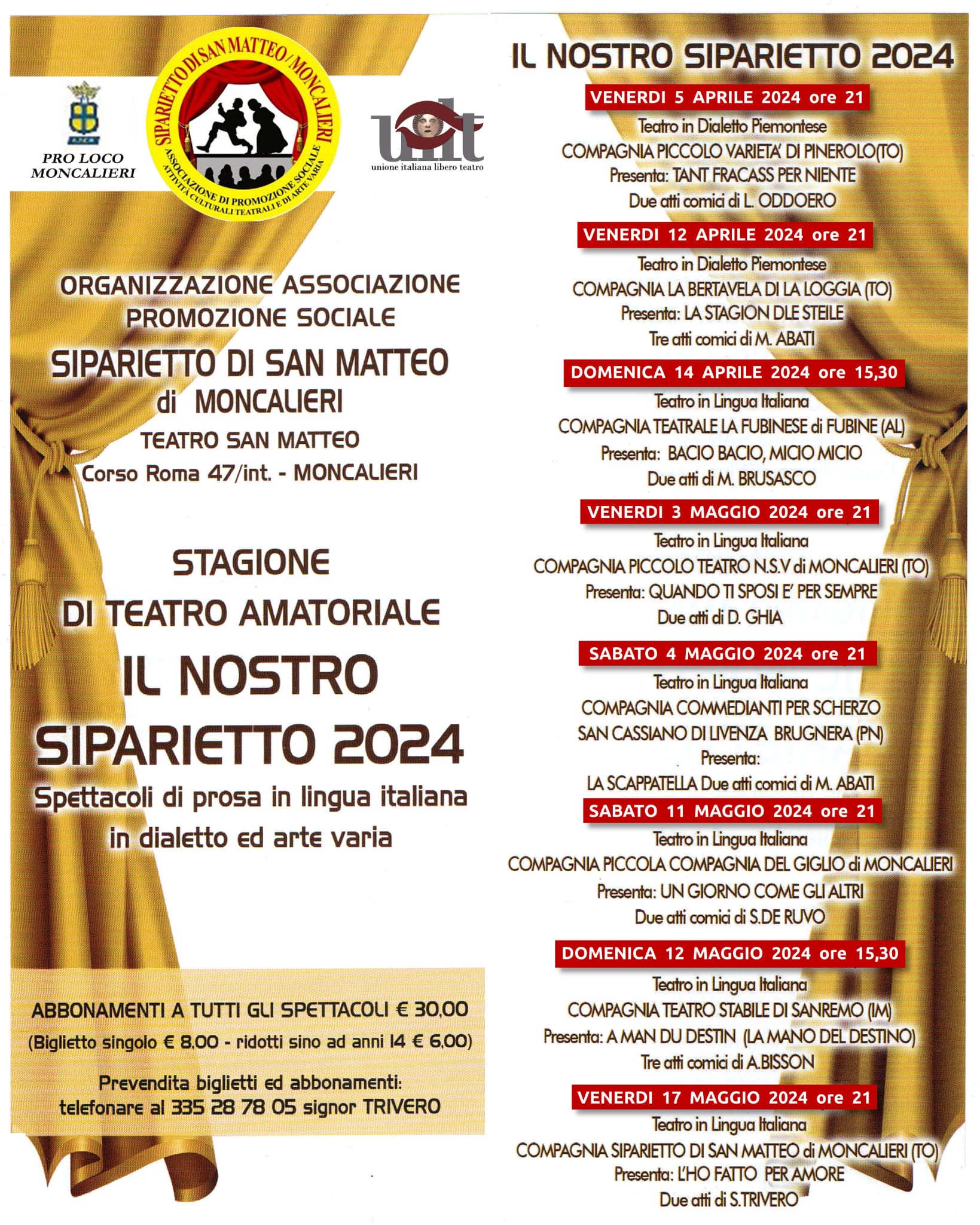 MONCALIERI. Dal 5 Aprile al 17 maggio “stagione amatoriale” al Siparietto di San Matteo.