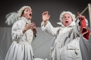 Due attori, quattro personaggi. Due servi e due padroni diseredati che vivono in una casa nobiliare venduta, pezzo a pezzo, per pagare i debiti di gioco del padrone e che si ritrovano risucchiati in un frenetico turbinio di equivoci, intrighi, maneggi e gelosie nel tentativo di salvare il lavoro e l’abitazione. Va in scena venerdì 22 marzo alle 21 al Teatro Comunale di Monteu da Po (Torino), “Caro Goldoni“, una produzione Crabteatro / Raumtraum. Con Pierpaolo Congiu, Costanza Maria Frola e Michele Guaraldo, per la regia di Giulio Federico Janni, “Caro Goldoni” è una summa dell’opera goldoniana, una storia nuova raccontata con scene delle sue commedie più belle. Una prova d’attori senza precedenti per uno spettacolo che lascia senza respiro.