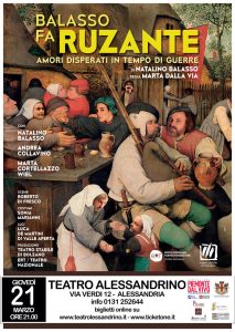 PINEROLO. Mercoledì 20 marzo 2024 “BALASSO FA RUZANTE amori disperati in tempo di guerre” al Teatro Sociale.