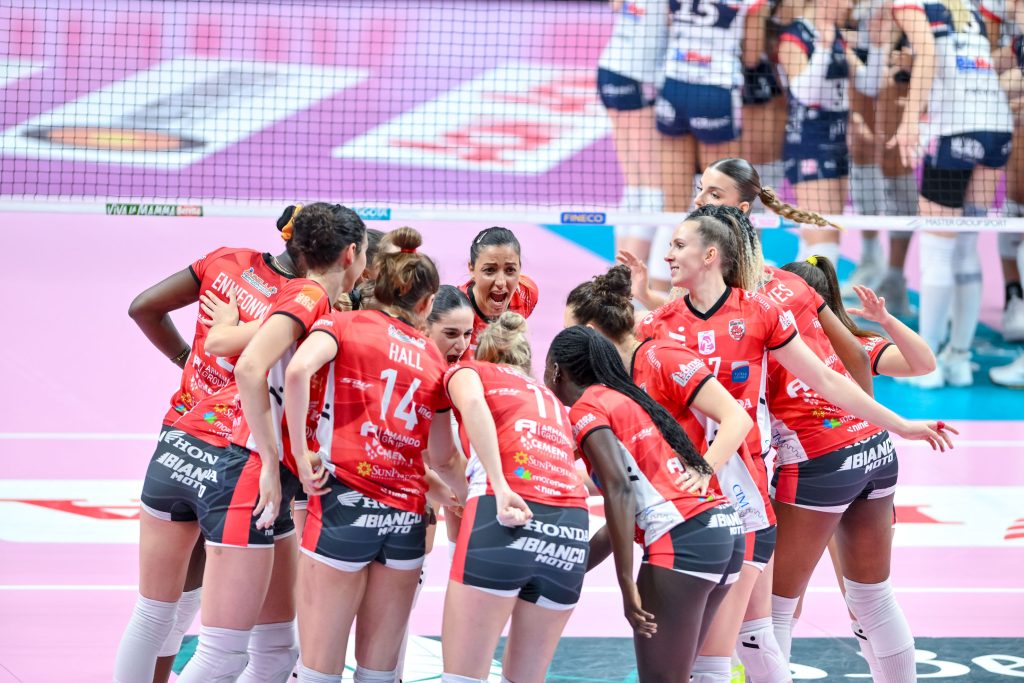 Primo set – Sul 6-6 Chieri guadagna un primo mini break che la porta sul 6-8 (Omoruyi). Sul 14-16 Anthouli dà il +3 alle biancoblù, che poi allungano con forza grazie all’azione in prima linea di Zakchaiou che sigla il 16-22. Enweonwu con due attacchi e Stigrot dimezzano il distacco (19-22), time-out di Bregoli e al rientro in campo Anthouli fa 19-23. Ottenute quattro palle set sul 20-24 con un muro di Gray, le chieresi chiudono 21-25 al secondo tentativo con Omoruyi. Nelle statistiche del set spiccano con 6 punti a testa Enweonwu, Anthouli e Zakchaiou, quest’ultima col 100% in attacco.