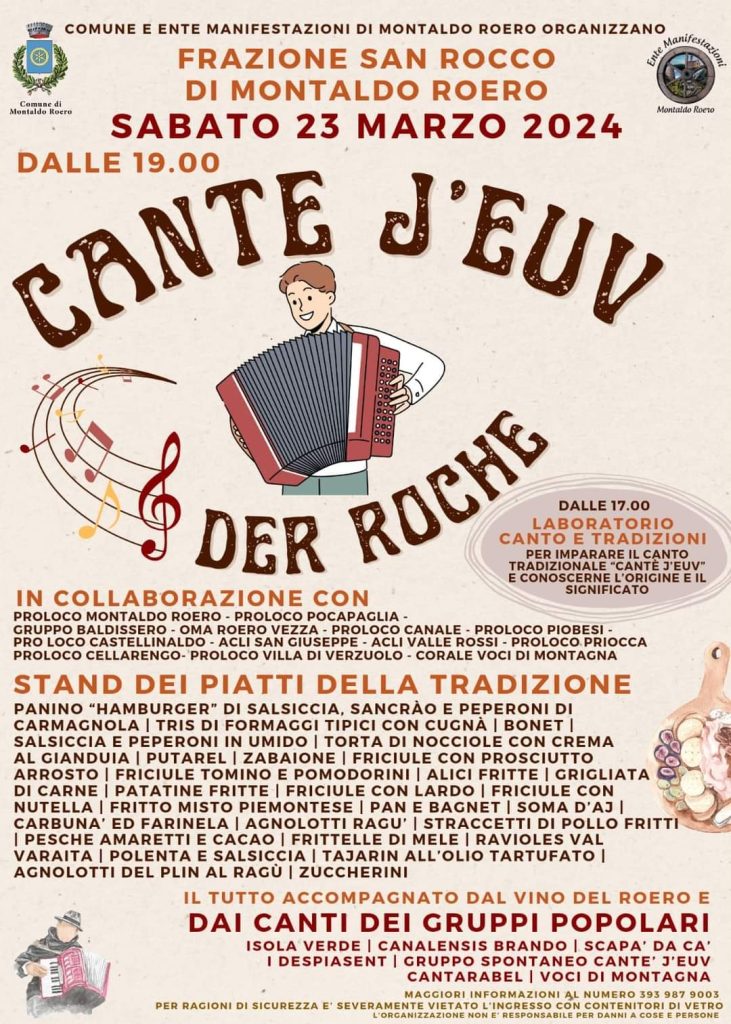 MONTALDO ROERO. Sabato 23 marzo “CANTE J’EUV”.
