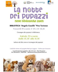 Pino Torinese. Venerdì 22 e sabato 23 marzo “La notte dei pupazzi” in Biblioteca