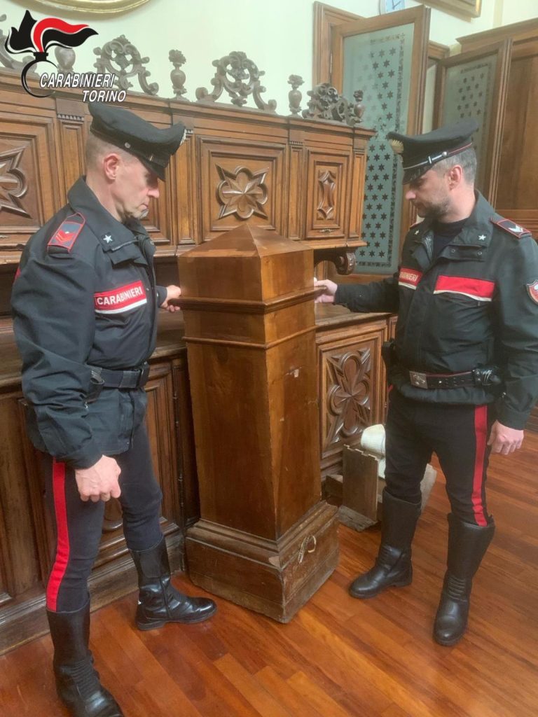 Il furto di un antico offertorio in legno, appartenete alla Chiesa della Visitazione di Torino, aveva destato scalpore tra i fedeli che avevano esternato il proprio rammarico al parroco reggente. L’evento, consumatosi in una fredda mattina del febbraio scorso,aveva ancor più evidenziato la spregiudicatezza del malfattore che, noncurante della sacralità e con lo scopo di sottrarne il contenuto caritatevole, non aveva lesinato a trascinarlo fuori dalla basilica e quindi a caricarlo a bordo di un veicolo con il quale era fuggito. Il pronto intervento dei militari del Nucleo Radiomobile di Torino, oltre a consentire il celere rinvenimento della colonnina religiosa, aveva permesso di acquisire elementi preziosi per le investigazioni. L’autore del reato era stato successivamente identificato e quindi denunciato all’Autorità Giudiziaria per furto aggravato. Per la gioia della comunità parrocchiale, nella mattinata del 19 marzo, il prezioso manufatto è stato riconsegnato al sacerdote.