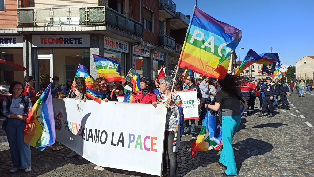 Il forte vento di sabato 23 marzo non ha fermato il colorato popolo della Pace di Nichelino. Parrocchie, Amministrazione Civica e il mondo del volontariato hanno sfilato fianco a fianco nella quarta edizione della marcia a Pace, chiedendo a gran voce la fine dei conflitti che insanguinano tanta parte del Mondo. Una Pace che non è solo un vuoto ideale, come ha sottolineato nel suo intervento all’avvio della marcia Don Alberto Vergnano, Co-Parroco nichelinese: “Le notizie complicate che sentiamo sono un invito continuo a costruire la Pace passo dopo passo, chiedendo a chi ha più potere di noi di impegnarsi per raggiungerla, senza dimenticare che la pace è un’opera che si costruisce tutti insieme, partendo da noi”. Alla marcia, che è partita da piazza Camandona intorno alle 15 per terminare davanti al Municipio, hanno preso parte, oltre ai rappresentanti della Chiesa locale, il Sindaco Giampiero Tolardo con la Giunta municipale, rappresentanti della comunità islamica e politici locali.
