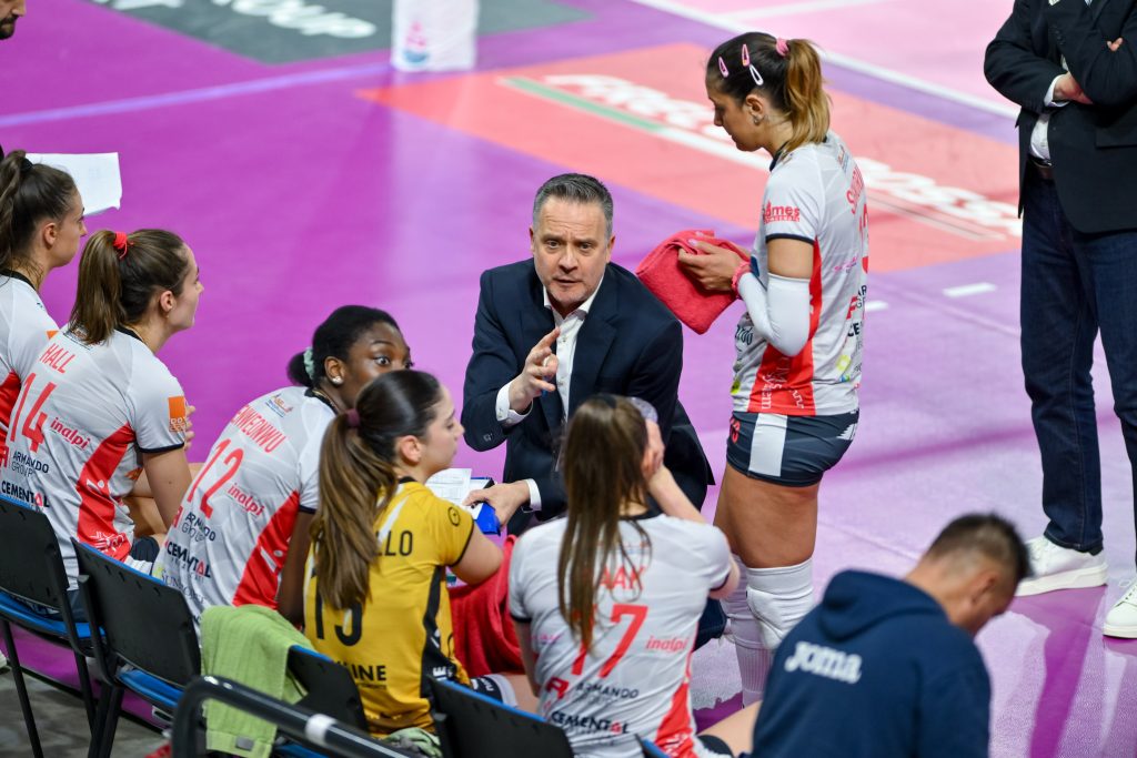 Parte subito in salita il quarto parziale di Cuneo che commette subito due errori pesanti in attacco 3 a 1. Cuneo recupera qualche lunghezza grazie anche ad un ace di Enweonwu e una fast di Sylves 6 pari. Gli attacchi di Lazic e l’ace di Acciarri però rimettono in discussione tutto 8 a 6. Cuneo cerca di restare sotto le avversarie, ma non ha abbastanza armi per combattere i colpi di Lazic e Acciarri 19 a 17. Ci si mette anche Alsmeier ad appesantire il risultato 23 a 19, poi 24 a 20. Mazzaro chiude il set 25 a 20 e condanna Cuneo alla retrocessione