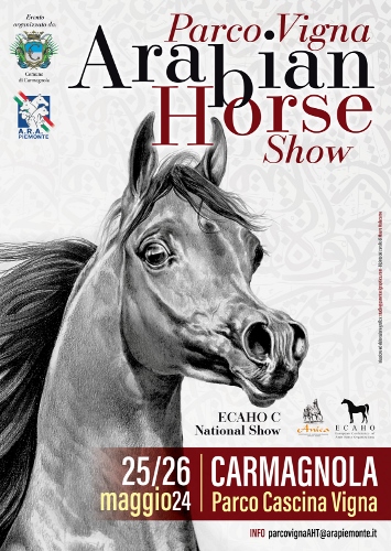 Il 25 e 26 maggio 2024 presso il Parco Cascina Vigna a Carmagnola  si svolgerà un evento d’eccezione, il primo Concorso Nazionale di Morfologia dedicato al Cavallo Purosangue Arabo intitolato Parco Vigna Arabians Horse Show, organizzato dal Comune di Carmagnola e Associazione Regionale Allevatori del Piemonte (ARAP), con l’affiliazione dell’ANICA (Associazione Nazionale Italiana del Cavallo Arabo) e dell’ECAHO (European Conference of Arabian Horse Organization)
