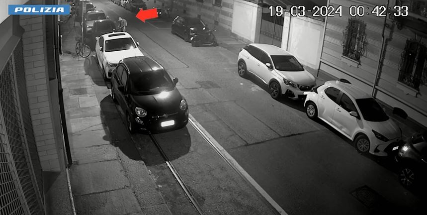 Nottetempo, il personale in servizio al Corpo di Guardia del Commissariato nota dalle telecamere di vigilanza della struttura un individuo avvicinarsi a un’auto parcheggiata lungo il perimetro dell’ufficio di Polizia. Osservando bene, i poliziotti vedono l’uomo estrarre un arnese di lunghe dimensioni ed iniziare a forzare la portiera.