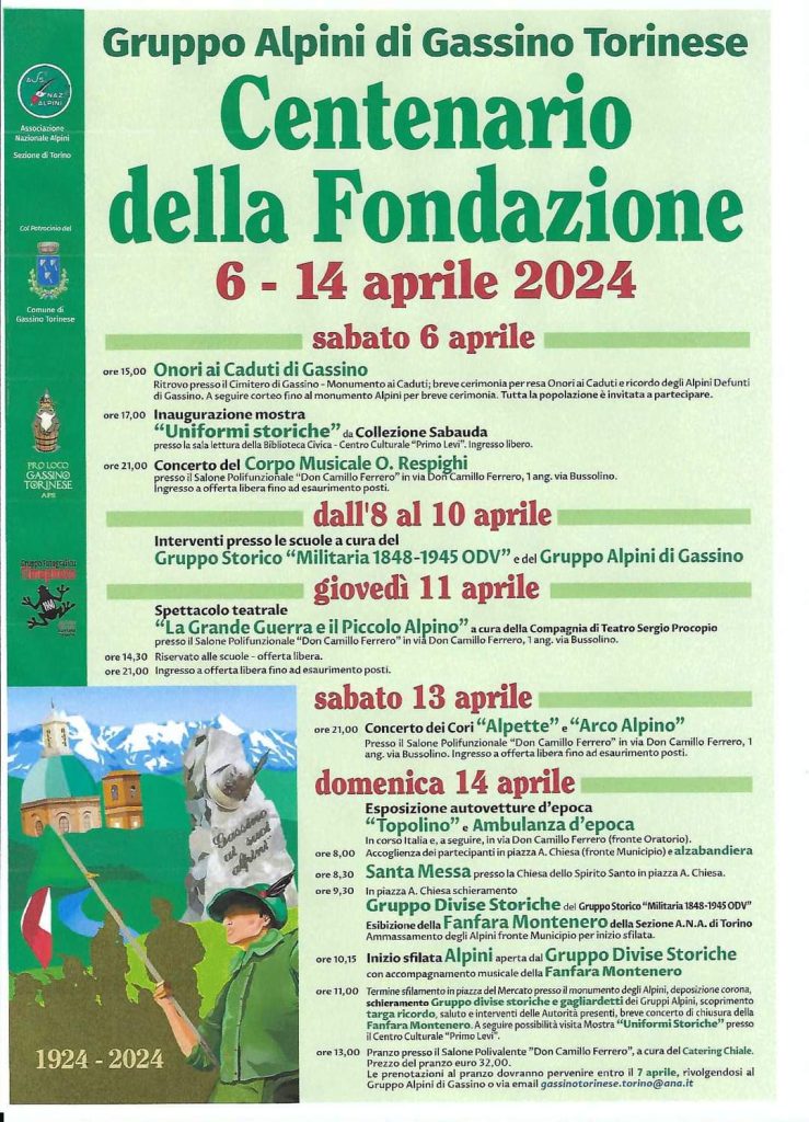 Gassino. 100 anni del Gruppo Alpini: il programma dal 6 al 14 aprile di Redazione · 3 Aprile 2024 Visto da: 374