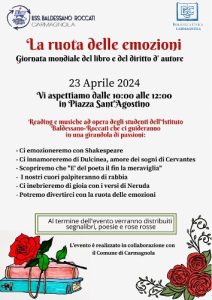 Per celebrare il 23 aprile 2024 a Carmagnola, l’IISS Baldessano Roccati organizza, in collaborazione con la Biblioteca Civica Rayneri – Berti e con il Comune di Carmagnola, un evento aperto anche alla cittadinanza in piazza Sant’Agostino.