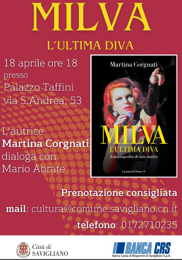 Il ricordo della “Pantera di Goro” sta per rivivere a Savigliano: giovedì 18 aprile, alle 18, presso palazzo Taffini, si presenta “Milva, l’ultima diva – Autobiografia di mia madre”. Interverrà l’autrice, Martina Corgnati (figlia della cantante), che dialogherà con Mario Abrate.