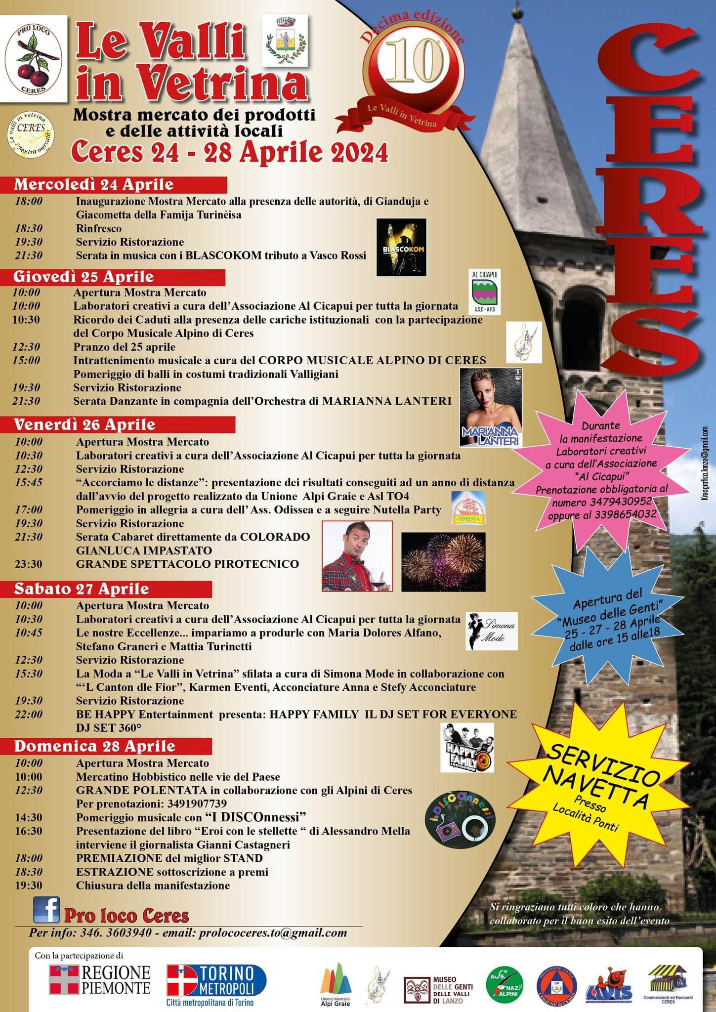 CERES. Da mercoledì 24 al 28 aprile “Le Valli in Vetrina “.