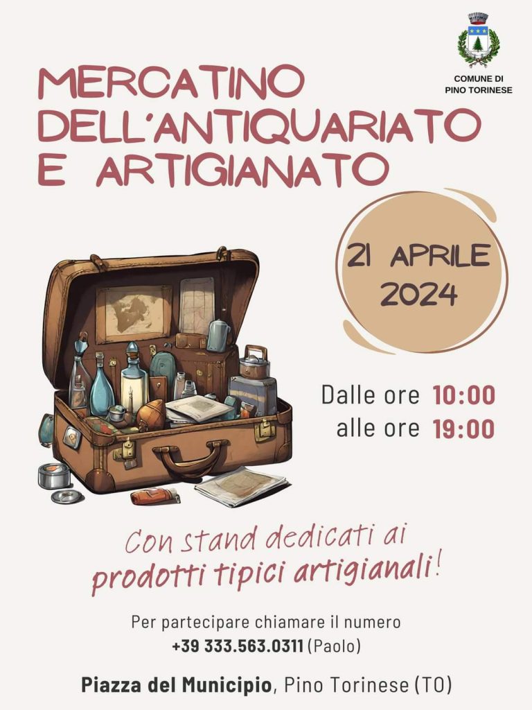 PINO TORINESE. Domenica 21 aprile  “Mercatino dell’ Antiquariato e Artigianato”