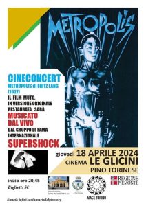 Pino Torinese. Giovedì 18 aprile Cine Concerto con il film “Metropolis” di Fritz Lang musicato in sala dai “Supershock”