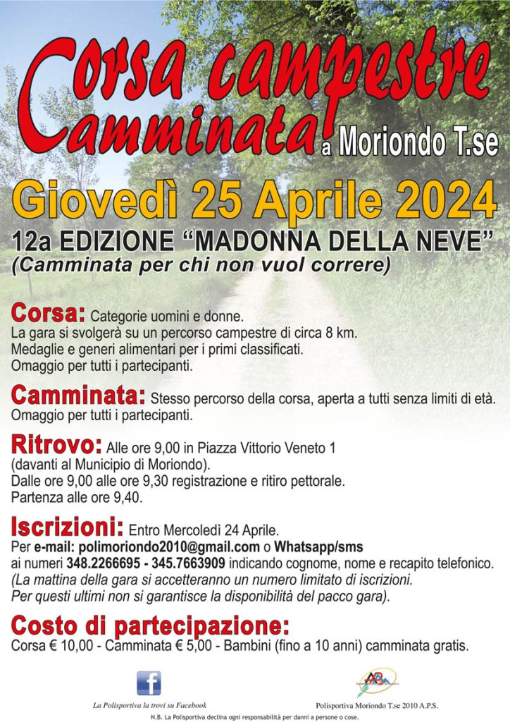 Moriondo Torinese. Corsa campestre o Camminata per chi non vuol correre