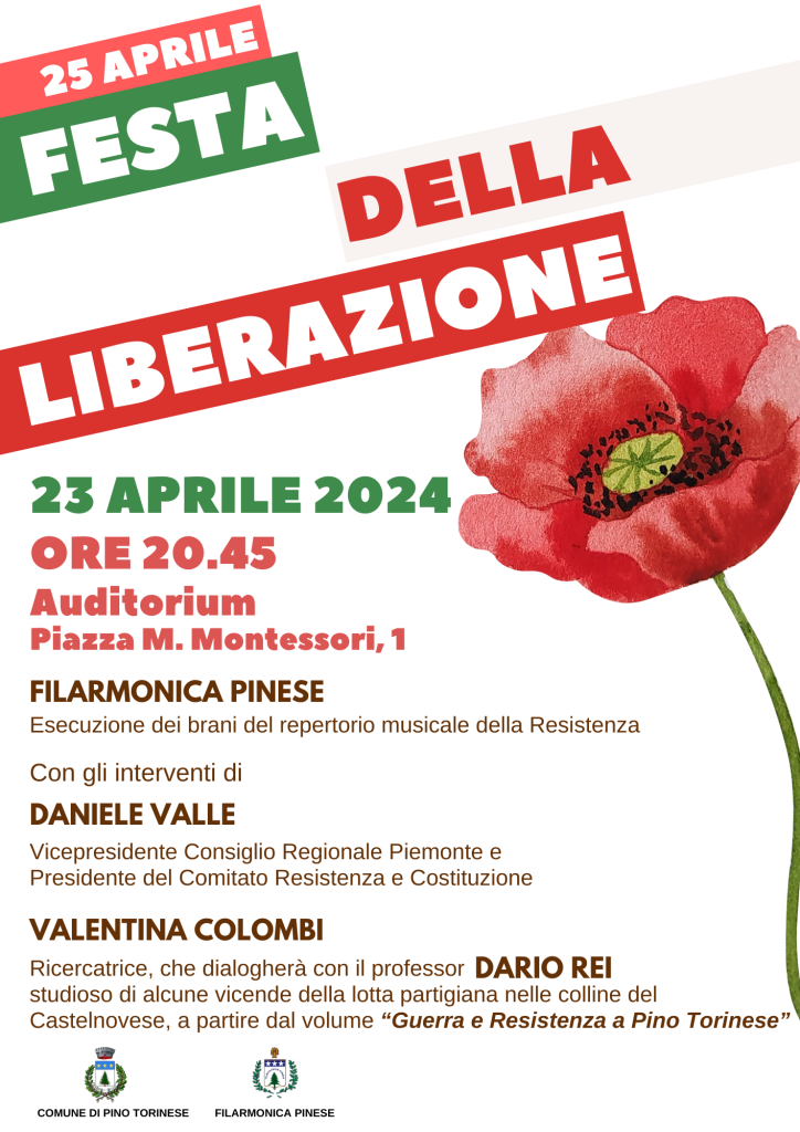 Martedì 23 aprile, alle ore 20:45, presso l’Auditorium del Centro Polifunzionale.Il Comune di Pino Torinese si appresta a celebrare la Festa della Liberazione con un evento che si terrà martedì 23 aprile 2024, alle ore 20:45, presso l’Auditorium del Centro Polifunzionale sito in Piazza Montessori. Una serata dedicata al ricordo e all’impegno, con un programma che intreccia musica, storia e riflessione, per sottolineare l’importanza della Resistenza e del suo significato per la nostra democrazia.La Filarmonica Pinese onorerà l’occasione con l’esecuzione di brani storici del repertorio della Resistenza, seguiti dagli interventi di personalità di spicco come Daniele Valle, Vicepresidente del Consiglio Regionale Piemonte e Presidente del Comitato Resistenza e Costituzione, e la ricercatrice Valentina Colombi, che dialogherà con il Professor Dario Rei su tematiche estratte dal suo libro “Guerra e Resistenza a Pino Torinese”.Prima dell’inizio della serata, alle ore 18:30, sempre presso l’Auditorium, avrà luogo anche l’iniziativa “Benvenuti diciottenni! La Costituzione è per voi” per la consegna ufficiale, da parte della Sindaca Alessandra Tosi, della Costituzione ai neo-diciottenni residenti a Pino. Anche questo evento vedrà la partecipazione di Daniele Valle, Vicepresidente del Consiglio Regionale del Piemonte e presidente del Comitato Resistenza e Costituzione, e altre rappresentanze del territorio quali Valentina Cera, Consigliera di Città Metropolitana di Torino con deleghe alle Politiche giovanili, Andrea Zummo, referente provinciale di Libera, e alcuni rappresentanti della Consulta Giovanile Pinese.“È con profondo rispetto e con lo sguardo rivolto al futuro che rendiamo omaggio a chi ha lottato per la nostra libertà – ha dichiarato la Sindaca Alessandra Tosi -. Ricordare la Liberazione è un dovere civico che ci lega indissolubilmente al nostro passato e ai principi di libertà e giustizia che formano il fondamento della nostra società. Questa serata sarà un’occasione per riaffermare quei valori; un momento di condivisione, ma anche di rinnovato impegno verso i valori democratici.”Elisa Pagliasso, Assessora alla Cultura, ha evidenziato l’importanza della memoria attiva: “Attraverso eventi come questo, vogliamo mantenere viva la memoria di un passato che ancora illumina il nostro presente, per trasmettere il messaggio di pace e libertà che la Resistenza ci ha lasciato in eredità. La musica e il dialogo saranno i nostri strumenti per celebrare questo importante anniversario. Vi invitiamo a partecipare numerosi a questa serata di commemorazione e riflessione. Il tutto preceduto da un importantissimo momento per i nostri giovani che si affacciano alla maggiore età, auspicando che possa essere per loro un inizio alla partecipazione attiva alla vita politica e civica del territorio, in qualità della nostra generazione futura.”Marta Riminucci, Consigliera alle Politiche Educative e di Formazione, ha concluso rivolgendo un invito speciale ai giovani: “La consegna della Costituzione ai neodiciottenni del nostro Comune,è un gesto simbolico che rappresenta la continuità della memoria e l’importanza dell’educazione alla cittadinanza attiva. È essenziale che le nuove generazioni comprendano la portata di quanto accaduto e il prezzo pagato per la nostra libertà e che sappiano leggere nella nostra Costituzione chiare indicazioni per una democrazia autentica e attuale vissuta ogni giorno nella quotidianità di ciascuno.”