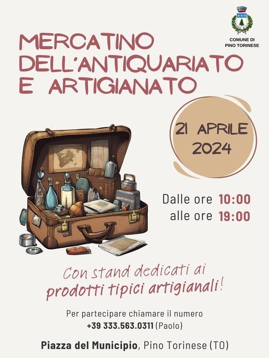 Pino Torinese. Domenica 21 aprile il “Mercatino dell’Antiquariato e Artigianato”