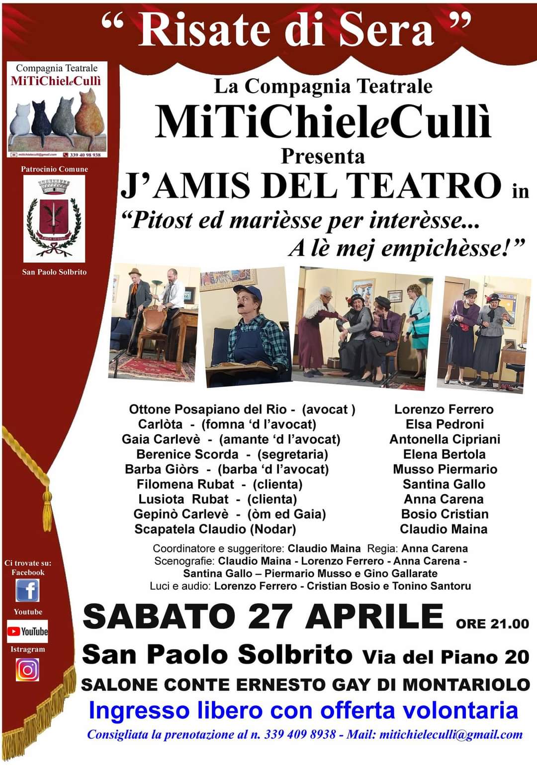 SAN PAOLO SOLBRITO. Sabato 27 aprile “Pitost ed marièsse per interèsse… A le mej empichèsse!”