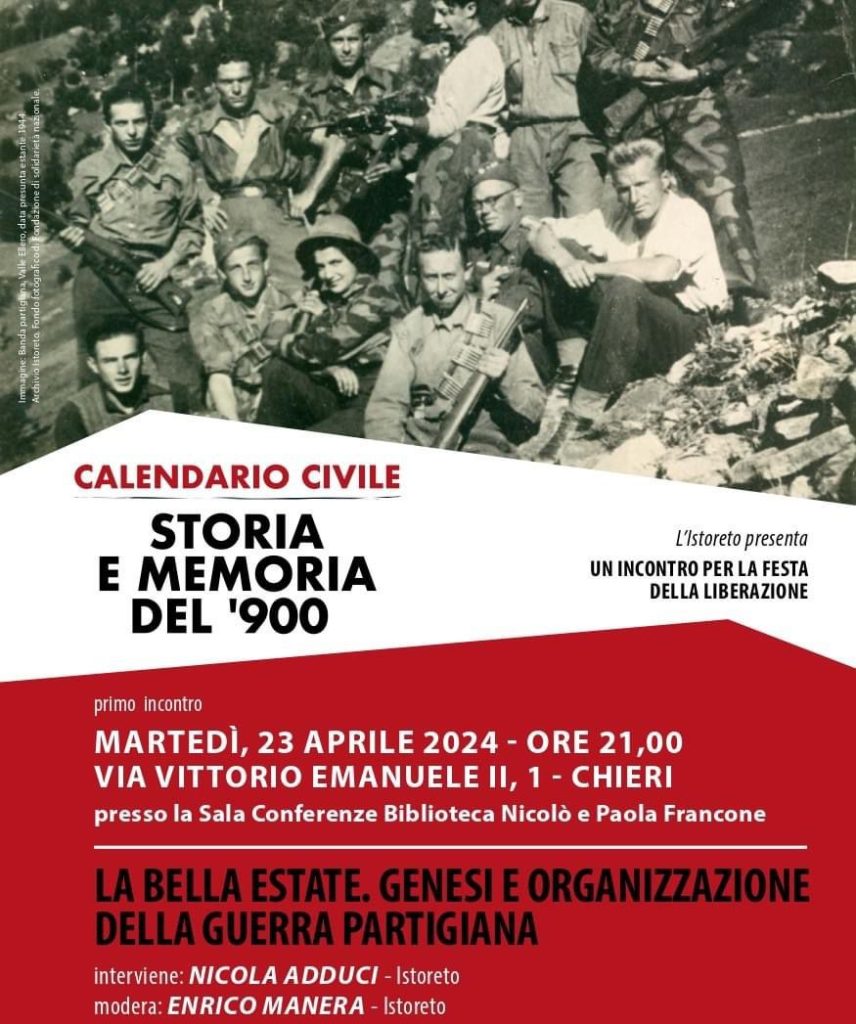 Chieri. “La bella estate. Genesi e organizzazione della guerra partigiana” di Redazione · 23 Aprile 2024 Visto da: 188