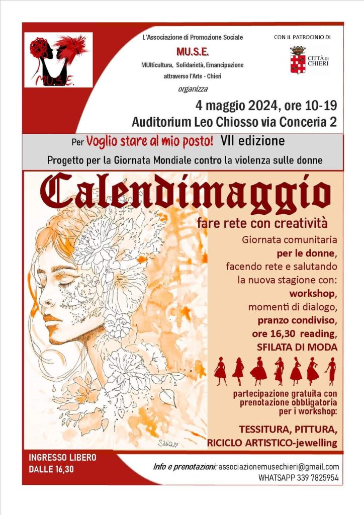 Chieri. Sabato 4 maggio in Conceria “Calendimaggio”. Giornata comunitaria per le donne di Redazione · 23 Aprile 2024 Visto da: 178