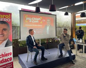 Folla e tanti nomi noti alla presentazione di Alessandro Sicchiero, che si ricandida a sindaco di Chieri con l’appoggio di sei liste: PD, Sicchiero per Chieri, Movimento 5 Stelle, Europa Chieri, Alleanza Verdi Sinistra e Chieri Ecosolidale. Presente alla serata anche il sindaco metropolitano Stefano Lo Russo, che ha annunciato l’ingresso di Sicchiero nella sua Giunta metropolitana come consigliere delegato all’ambiente.