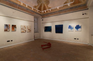 carica di sentimenti contrastanti che si insinua nell’animo dello spettatore, invitandolo ad entrare, immergendosi, all’interno dell’opera stessa. Da tempo l’artista lavora su temi ambientali, dalle maree nere alle mareggiate e alle terre fossili che approfondisce con amaro lirismo, portando a riflettere sul ruolo dell’uomo e sul suo rapporto con la Natura. Colle da legatoria imprigionano i materiali organici che sfondano i confini del quadro, invadendo, con prepotenza, lo spazio dello spettatore. La riflessione sui temi approfonditi si fa ancora più forte grazie al dialogo tra le opere di Mario Giammarinaro e le ecopoesie di Massimo D’Arcangelo, scrittore e poeta toscano sensibile ai temi ecologici che tratta su riviste nazionali e internazionali. Questo dialogo tra pittura e poesia lo si ritrova tanto nel catalogo della mostra, dove le immagini delle opere sono pubblicate e stampate accostate alle poesie, quanto fisicamente in mostra, dove gli spettatori potranno leggere e riflettere sulle parole scritte, lasciandosi travolgere dai dipinti-scultura dell’artista e dai cieli violenti e, nello