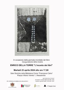 In occasione della Giornata Mondiale del Libro, la Città di Alessandria partecipa con un evento di grande rilievo che verrà ospitato nelle Sale Storiche della Biblioteca Civica“Francesca Calvo”: si tratta di un omaggio a Enrico Della Torre, pittore e incisore contemporaneo recentemente scomparso, che fu artista fra quanti maggiormente hanno caratterizzato la ricerca segnico-astratta italiana dal secondo dopoguerra ai giorni nostri.