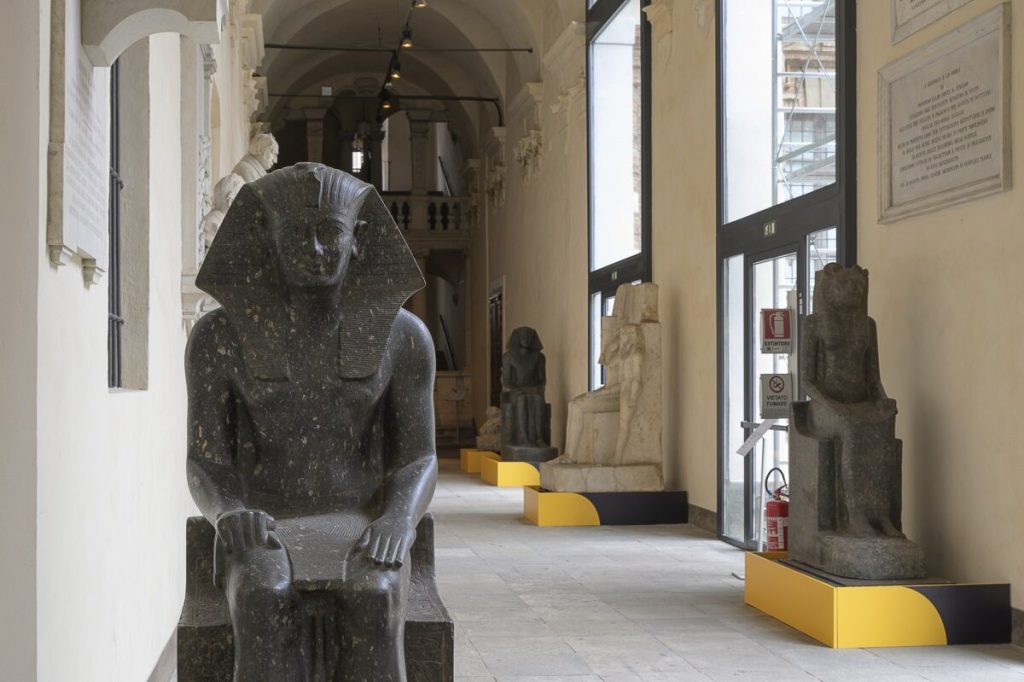 Le statue di dei e faraoni della Galleria dei Re del Museo Egizio sono protagoniste a partire dal 23 aprile di un nuovo allestimento temporaneo nell’atrio e sotto le arcate del Museo Egizio e dell’Accademia delle Scienze, dal titolo “Verso la nuova Galleria dei Re”. L’esposizione, frutto della collaborazione tra le due istituzioni, offrirà fino a ottobre ai visitatori una suggestione dell’origine del Museo, 200 anni fa, quando arrivarono a Torino le grandi sculture di faraoni e divinità. Nel 1823 queste, infatti, assieme a migliaia di reperti della collezione Drovetti, varcarono la soglia del palazzo barocco che oggi ospita il Museo Egizio e l’Accademia delle Scienze e furono sistemate al piano terreno e nella corte. Un anno dopo nacque a Torino il primo Museo Egizio al mondo. L’allestimento richiama la posizione originale delle statue nei cortili dei grandi templi dell’antico Egitto, dove le divinità e i faraoni, pur manifestando la propria ieraticità e autorevolezza, mantenevano uno stretto legame con i fedeli.